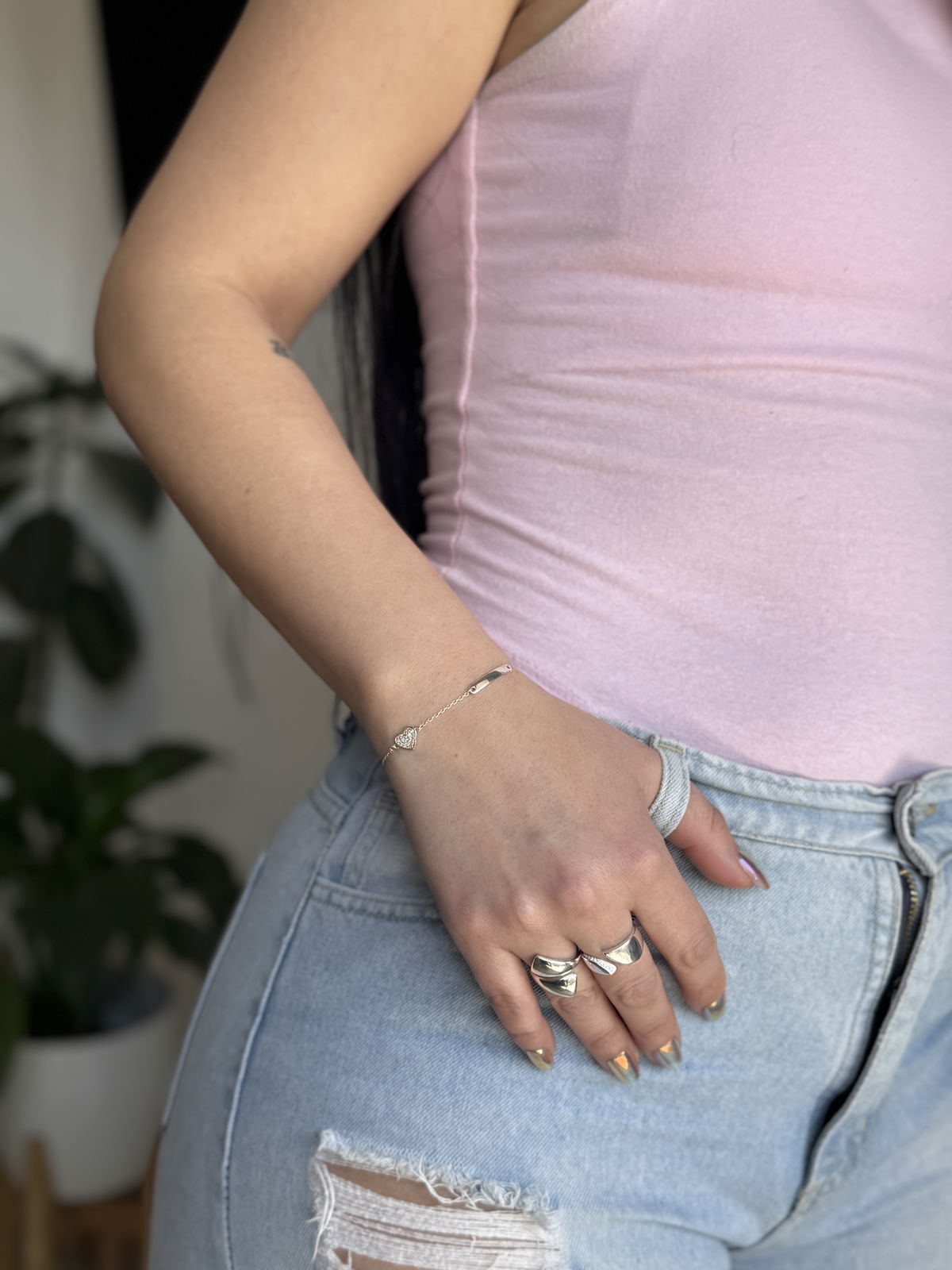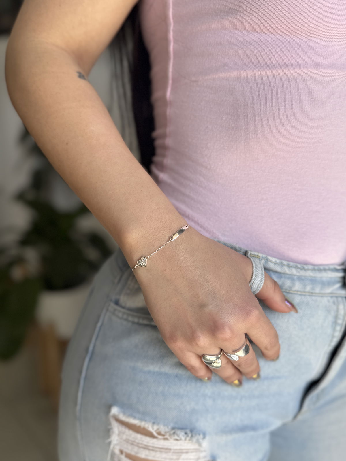 Pulsera Plata 925 - chapita y corazon