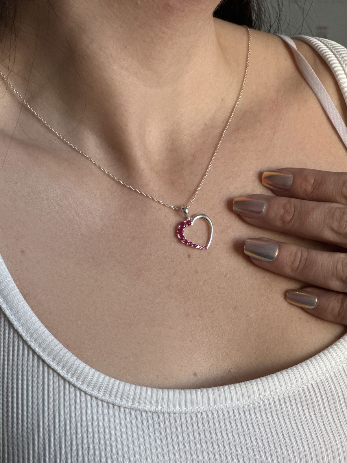 Cadena Plata 925 - corazón cristales rosa