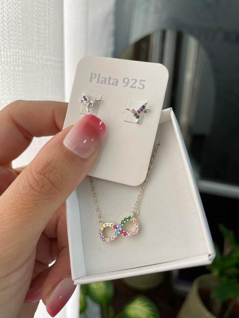 COMBO COLLAR INFINITO AROS COLIBRÍ PLATA 925