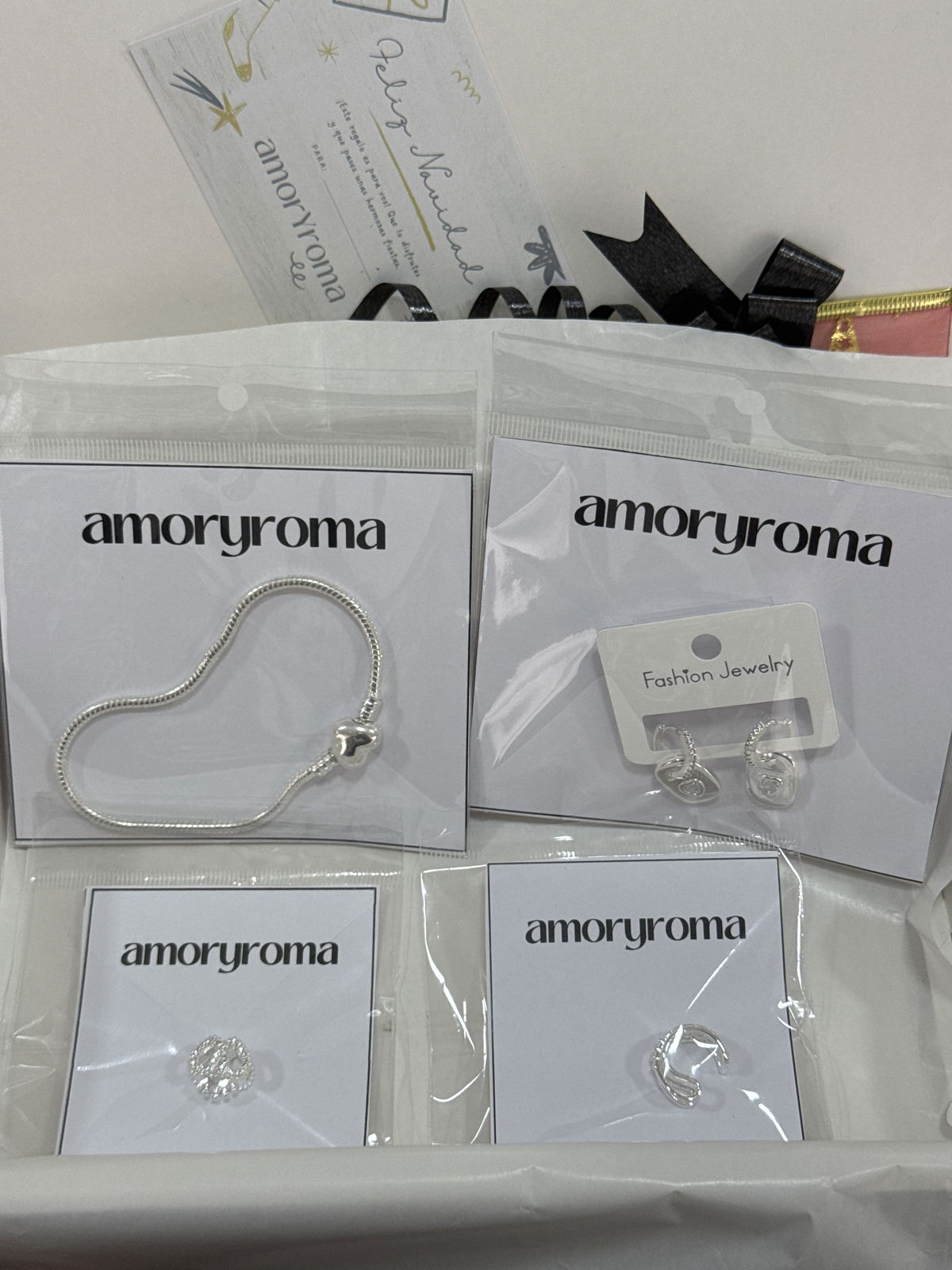 Un regalo listo para enamorar. Incluye una pulsera estilo Pandora , unos aros con dijes chapita y corazones y zirconias, un Ear Cuff con cristales, y un dije charm para sumarle a la Pandora corazones .todo en acero blanco .