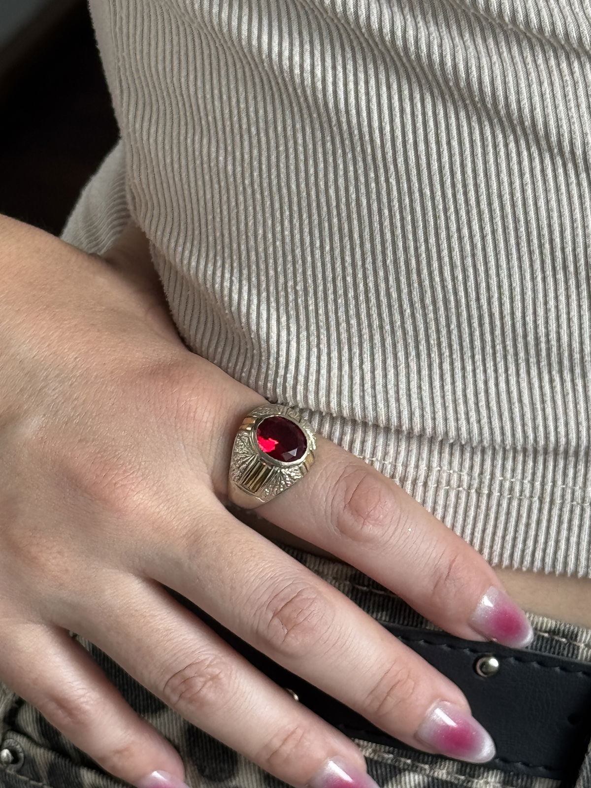 ANILLO CAPO PLATA 925 PIEDRA ROJA Y ORO