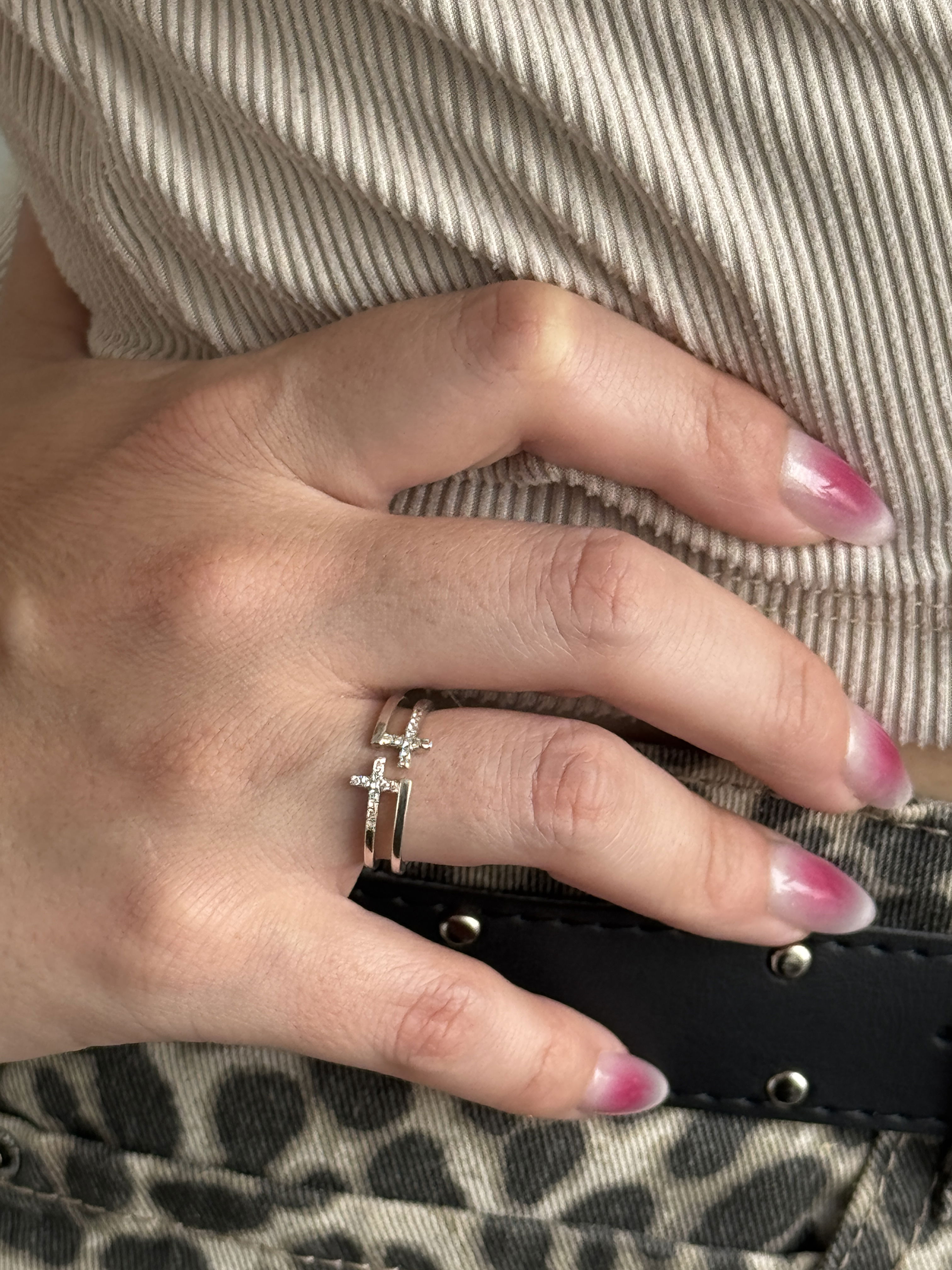 ANILLO DOBLE CRUZ PLATA 925
